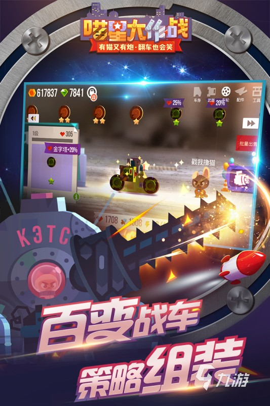 你将作为喵星工程师,去收集武器、装甲等等配件,去装备自己的战车,参加10秒一局的快节奏战斗,每局战斗都由系统自动执行,胜负主要取决于战车的结构强度和武器的合理性,它的视觉是2D卡通贴纸美学风格,融合了蒸汽朋克等科技元素,场景设计也比较多元,工厂废墟、沙漠油田等12种地形,战斗场景会随着关卡推进而变化。